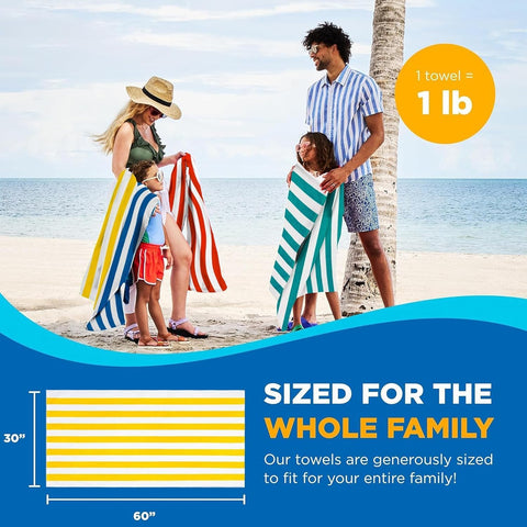 - Oversized Beach Towels - Measuring 30 x 60 inches, our large beach towels oversized provide maximum comfort, ideal for both poolside relaxation and beach adventures. Their ample size allows you to effortlessly wrap your entire body and dry off from head to toe. Unlike traditional large beach towels, our large pool towels can cover your lounge chair and provide plenty of space when laying out on the sand